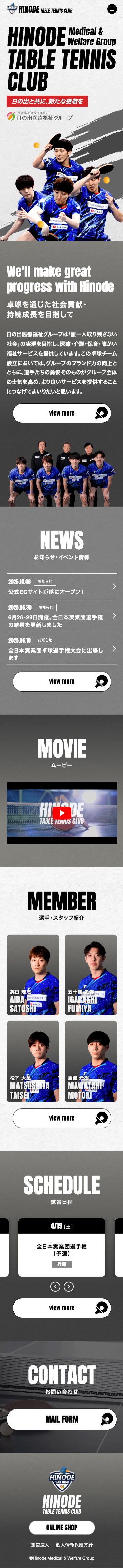 クールな配色とモダンなレイアウトを採用し、チームの熱量と躍動感を、Web上でかっこよく伝えています。