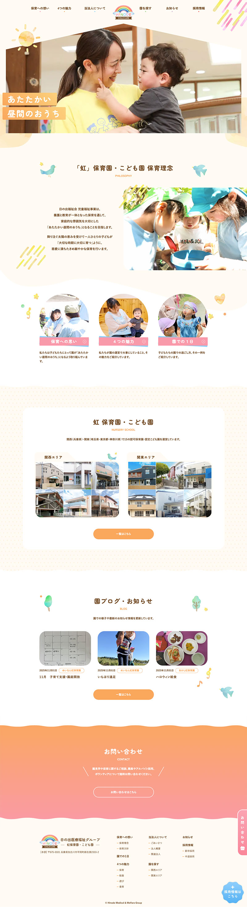 保育理念「あたたかい昼間のおうち」を目指す保育園・こども園のウェブサイトを制作しました。